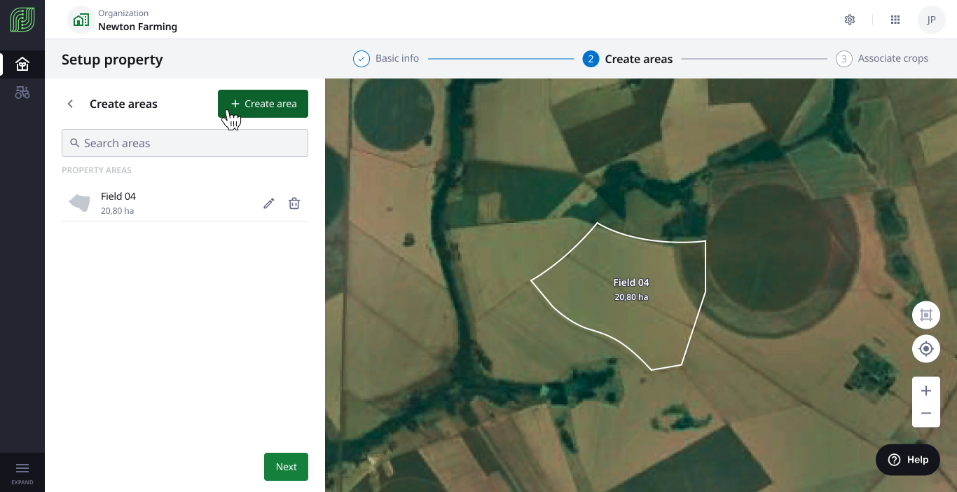 - Una vez que haya terminado de dibujar, pulse "Next” (Siguiente) para asociar los cultivos a los campos.