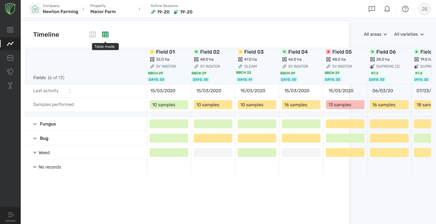 Expanda cada fila para ver los detalles sobre el muestreo y el nivel de gravedad de cada punto. Si hace clic en una de las celdas, podrá migrar directamente a dicha muestra específica en la vista del mapa.