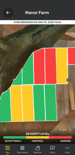 Severity Map (Mapa de gravedad) en la aplicación Cropwise Protector |